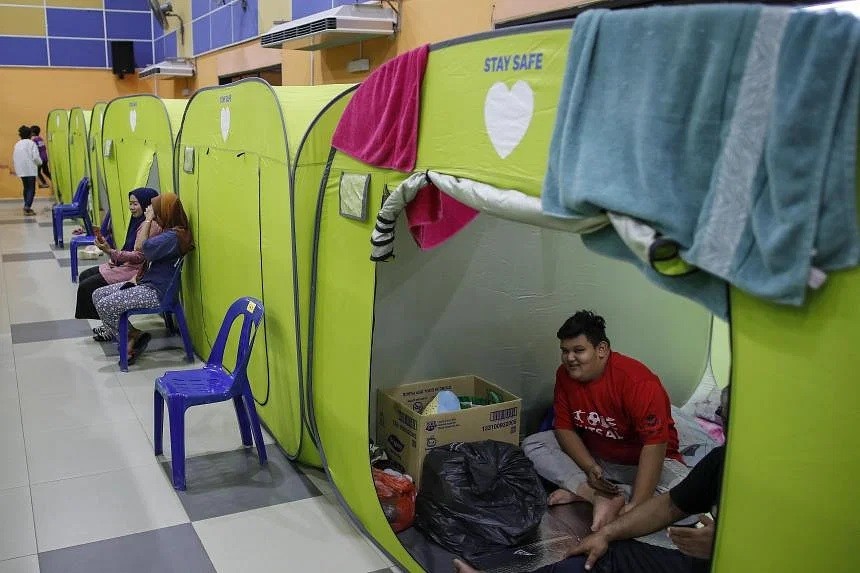 | Người dân sơ tán lũ lụt tại một trung tâm cứu trợ ở Kota Tinggi, bang Johor, ngày 5/3. ẢNH: EPA-EFE |