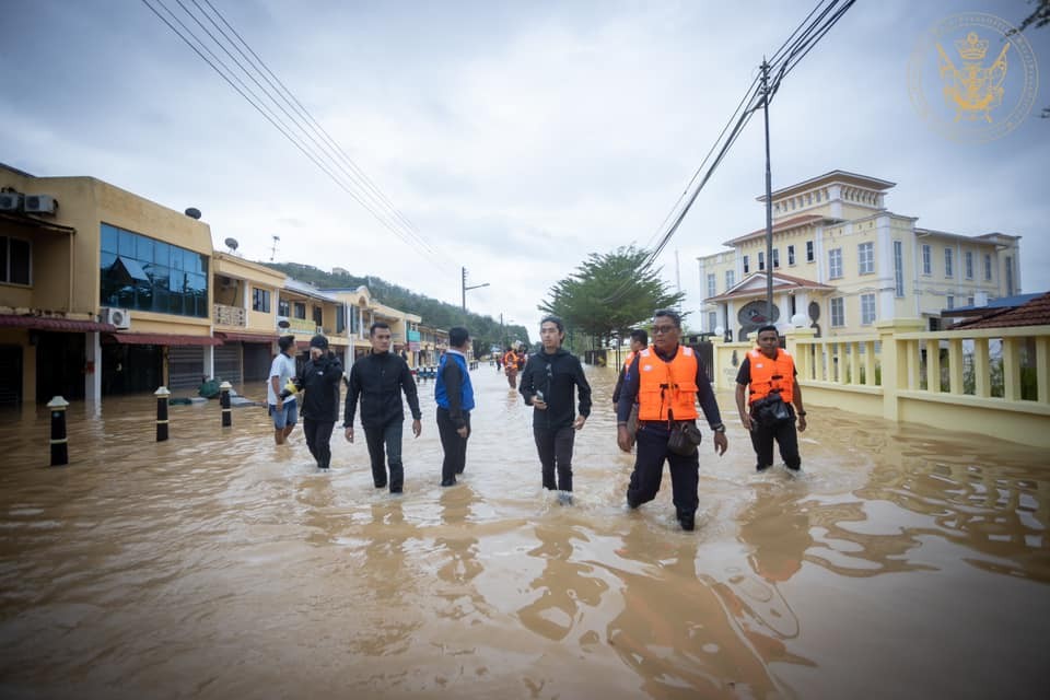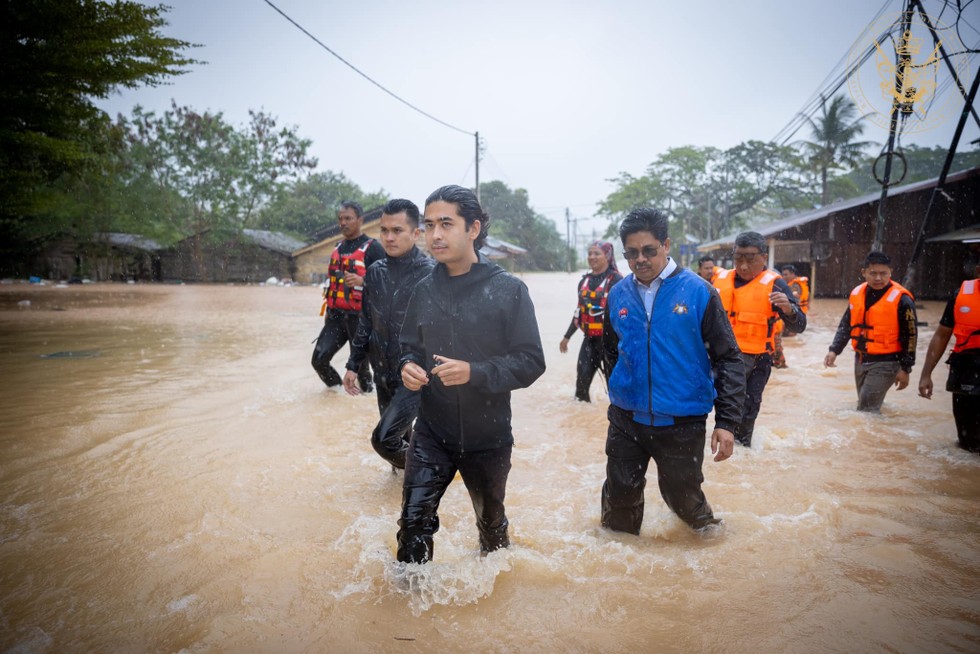 | Hoàng tử Johor Tunku Abu Bakar Sultan Ibrahim đi thăm vùng lũ lụt ở bang Johor, ngày 5/3. Ảnh: Facebook/Sultan Ibrahim Sultan Iskandar |