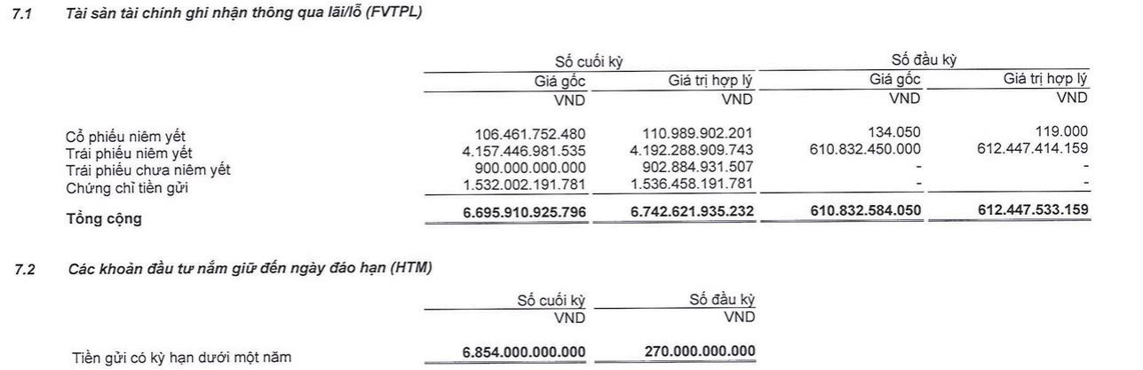 | Cơ cấu danh mục FVTPL và HTM của LPBS. Ảnh: BCTC quý 2/2025 của LPBS |