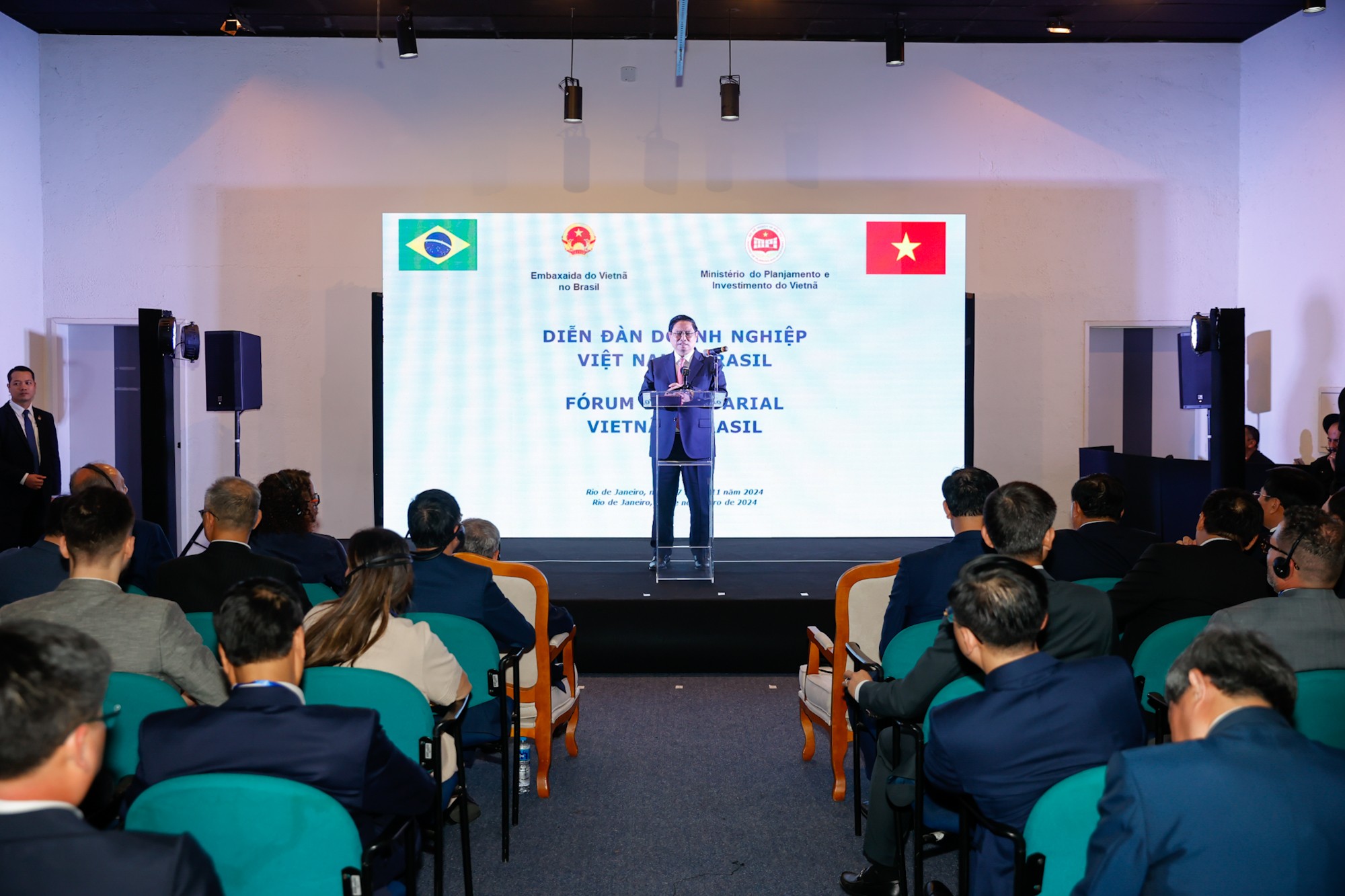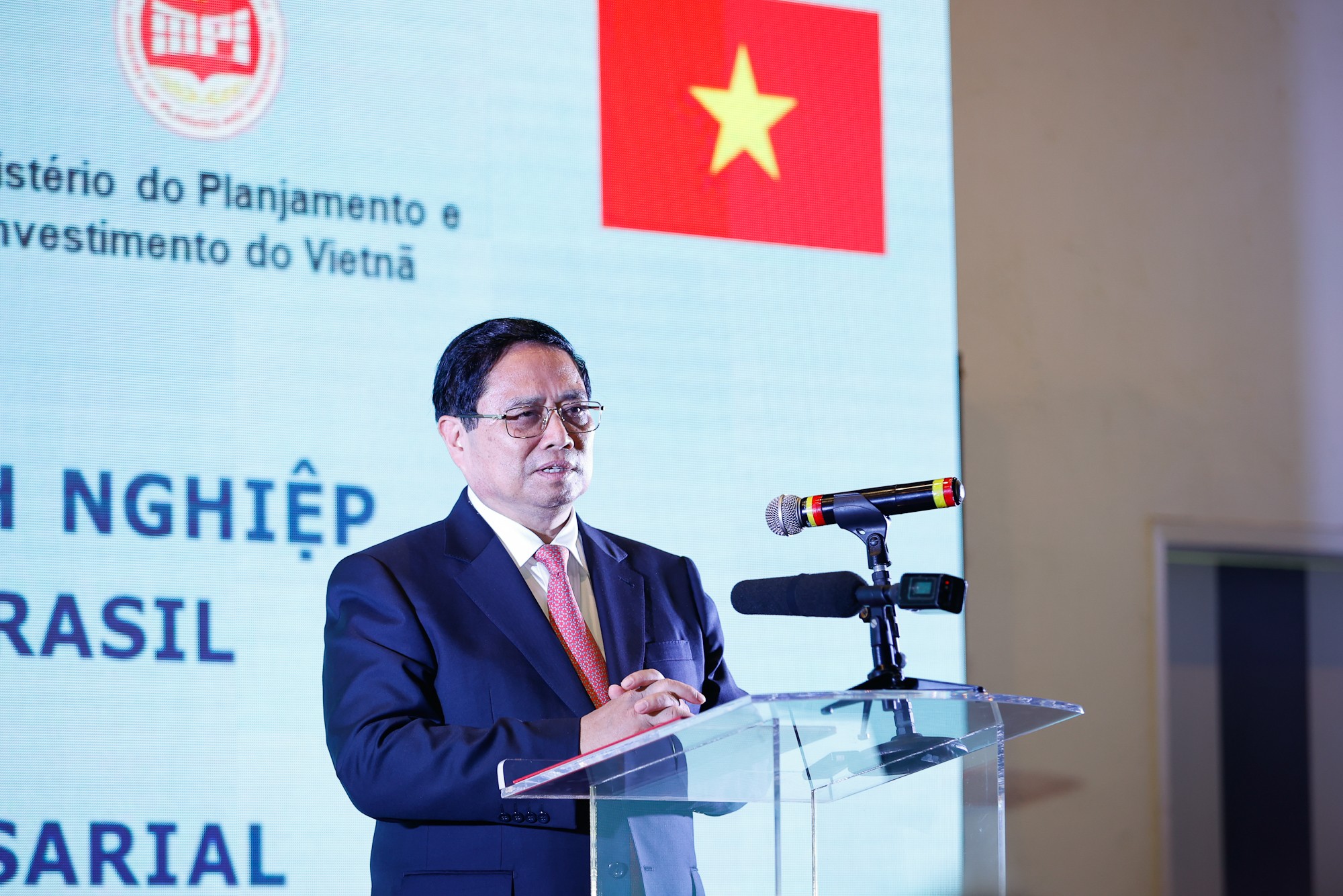 Phát biểu tại Diễn đàn, Thủ tướng Phạm Minh Chính cho biết vừa có cuộc hội đàm rất thành công với Tổng thống Brazil Luiz Inácio Lula da Silva, hai bên đã thống nhất nâng cấp quan hệ hai nước lên Đối tác chiến lược.