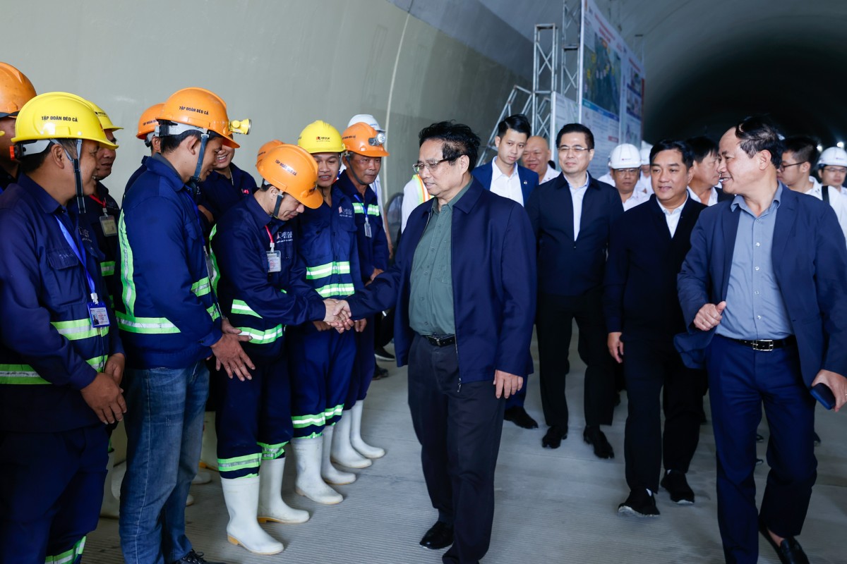 Trên công trường, Thủ tướng Phạm Minh Chính biểu dương và đề nghị các nhà thầu tiếp tục nỗ lực thi công, triển khai "3 ca 4 kíp, vượt nắng thắng mưa, ăn tranh thủ, ngủ khẩn trương, làm ngày không đủ tranh thủ làm đêm, làm việc xuyên lễ xuyên Tết", có nhiều giải pháp, sáng kiến sáng tạo; đồng thời tăng cường hợp tác, sử dụng nhà thầu phụ, doanh nghiệp địa phương để đẩy nhanh hơn tiến độ thi công và các doanh nghiệp địa phương lớn mạnh, trưởng thành.