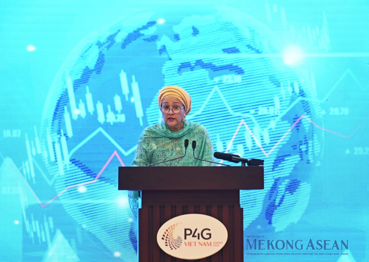 | Phó Tổng Thư ký Liên Hợp Quốc Amina Mohammed phát biểu tại phiên đối thoại. Ảnh: Đỗ Thảo - Mekong ASEAN |