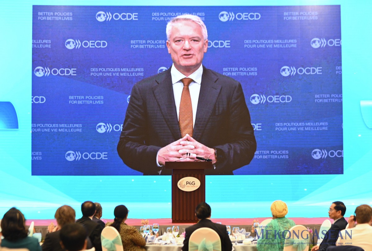 | Tổng Thư ký OECD Mathias Cormann gửi thông điệp ghi hình tới phiên thảo luận. Ảnh: Đỗ Thảo - Mekong ASEAN |