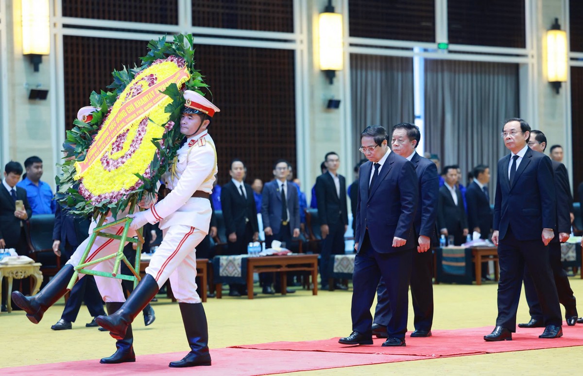 | Lễ truy điệu nguyên Chủ tịch Đảng Nhân dân Cách mạng Lào, nguyên Chủ tịch nước CHDCND Lào Khamtay Siphandone. Ảnh VGP. |
