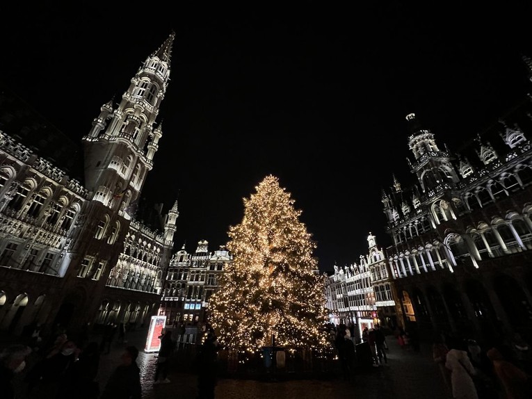 | Cây thông Noel tại Quảng trường Lớn, Brussels, Bỉ. Ảnh: Facebook Lee Hsien Loong |
