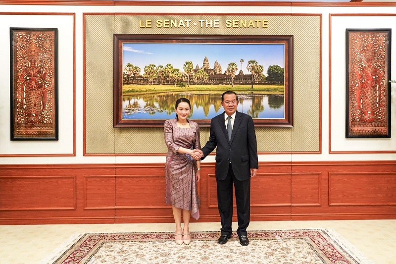 | Bà Paetongtarn Shinawatra và ông Hun Sen Phnom Penh ngày 23/4. Ảnh: Facebook/@Ing Shinawatra |