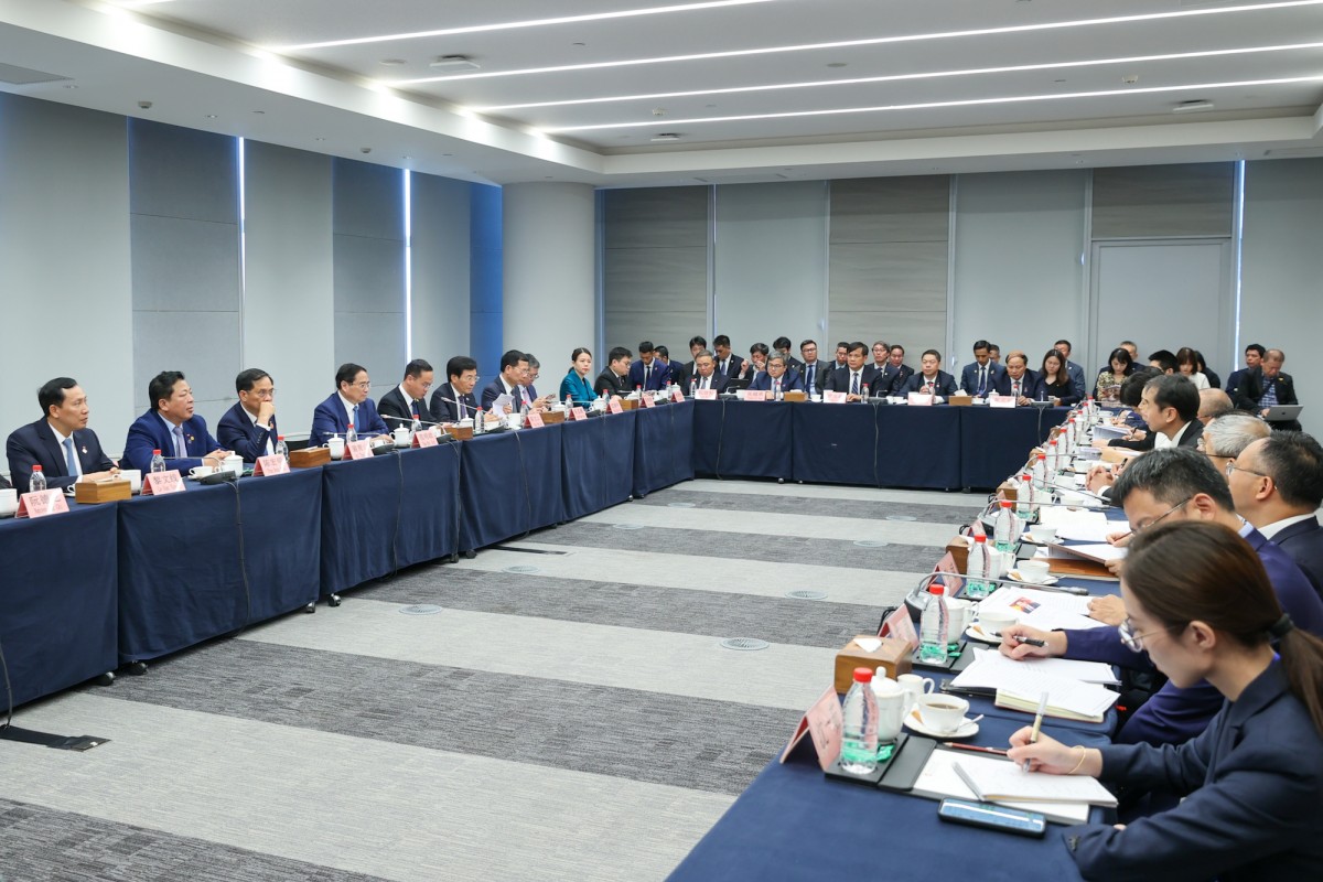 | Thủ tướng và đoàn công tác làm việc với lãnh đạo SSE. Ảnh: VGP. |