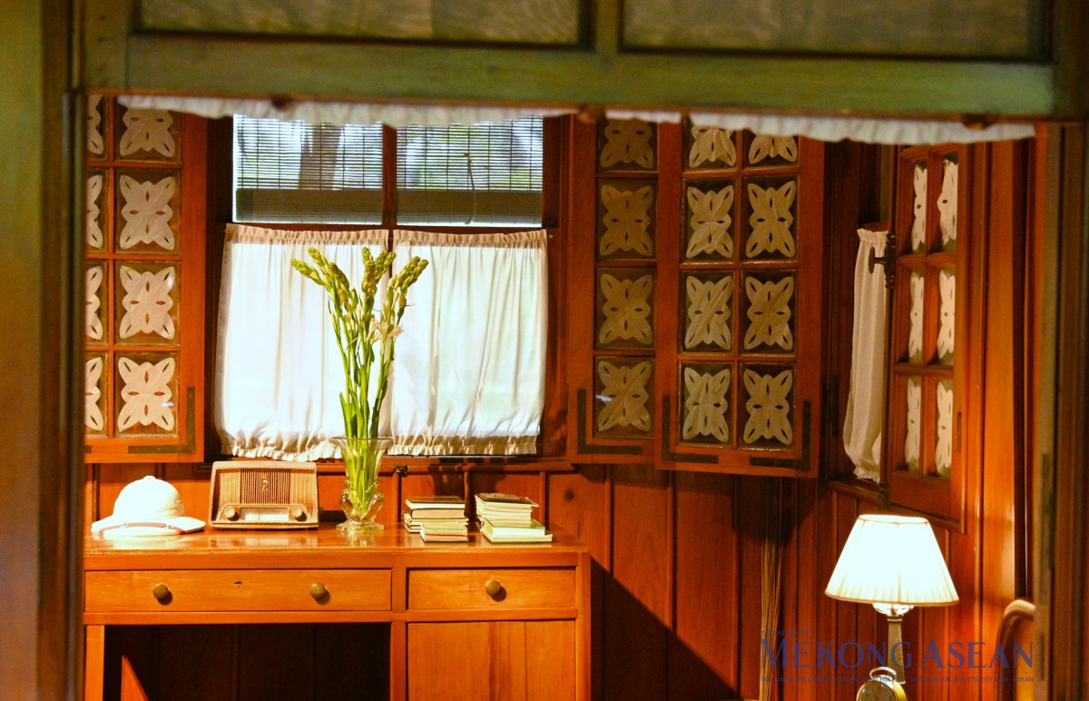 | Thủ tướng Kyrgyzstan Adylbek Kasymaliev quan sát căn phòng ngủ giản dị của Bác tại ngôi Nhà sàn. Ảnh: Đỗ Thảo - Mekong ASEAN |