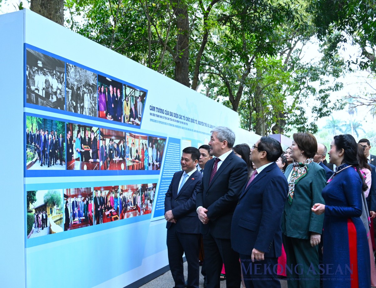 | Hai Thủ tướng thăm trưng bày hình ảnh đại diện các tổ chức quốc tế, nguyên thủ quốc gia thăm Khu Di tích Phủ Chủ tịch. Ảnh: Đỗ Thảo - Mekong ASEAN |