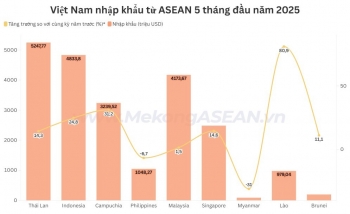 Theo số liệu từ Cục Hải quan, quý 1/2025, thương mại Việt Nam - Campuchia đạt 3,23 tỷ USD, tăng 9,2% so với cùng kỳ năm trước (YoY). Trong đó, Việt Nam xuất khẩu sang nước này thu về 1,31 tỷ USD, tăng 5,5% YoY; nhập khẩu đạt 1,91 tỷ USD, tăng 11,9% YoY. Việt Nam nhập siêu 592 triệu USD từ Campuchia trong kỳ.