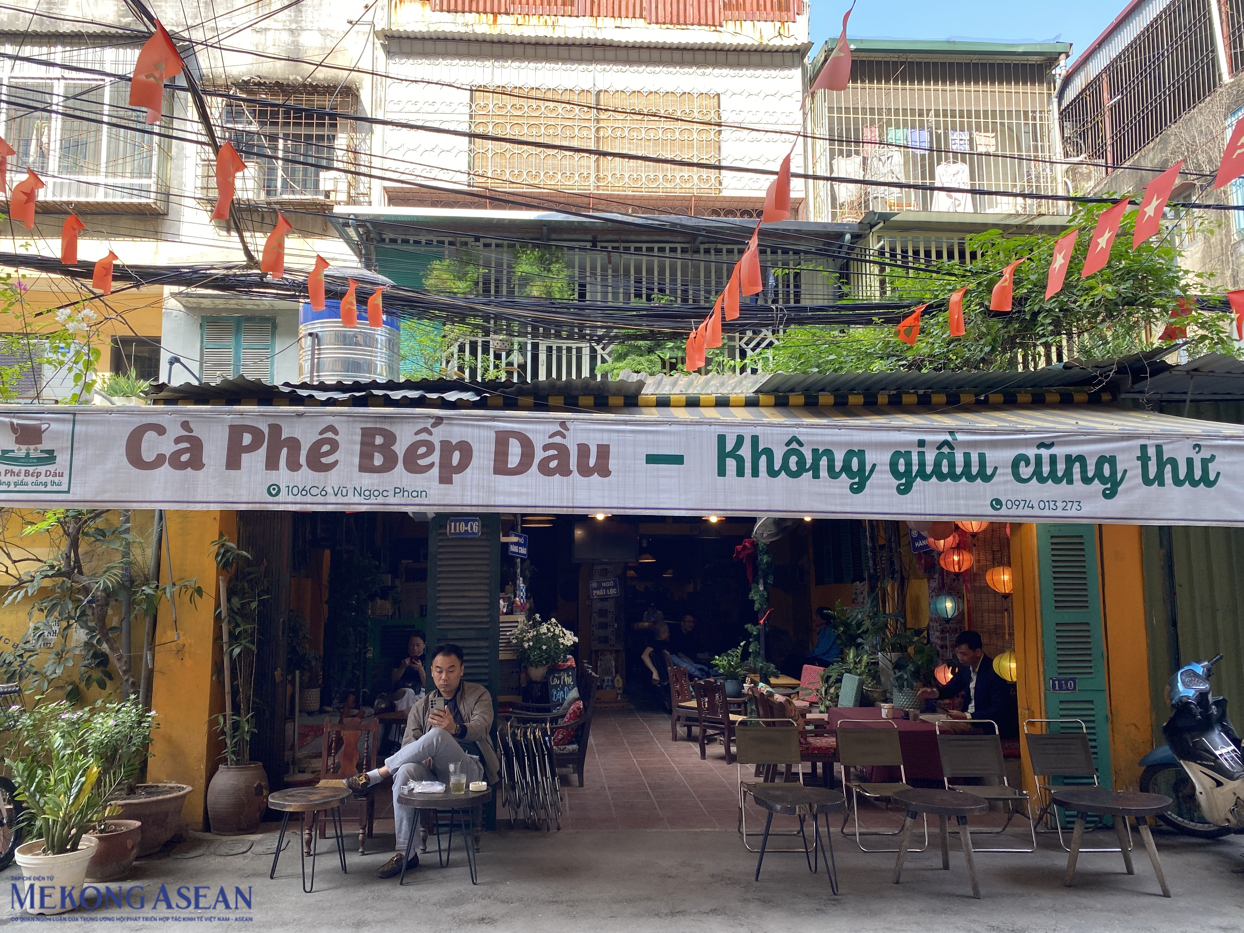 Nằm trong một căn tập thể cũ ở Hà Nội, Cà phê Bếp Dầu tái hiện không gian sinh hoạt thời bao cấp, nơi những vật dụng quen thuộc và mùi “khói dầu” gợi nhắc ký ức của một thế hệ.