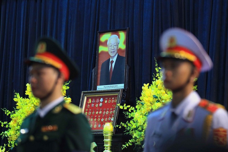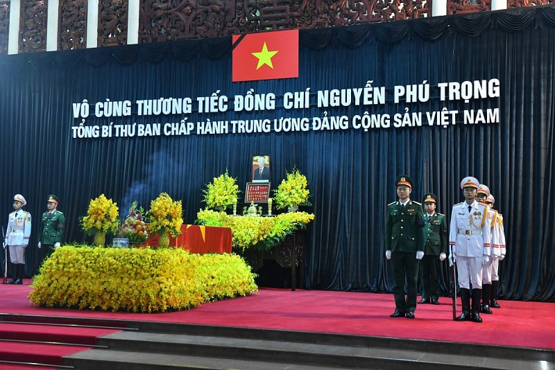 Lễ viếng, Lễ truy điệu Tổng Bí thư Nguyễn Phú Trọng được tổ chức cùng thời gian trên tại Hội trường Thống Nhất, TP HCM và tại quê nhà xã Đông Hội, huyện Đông Anh, thành phố Hà Nội.