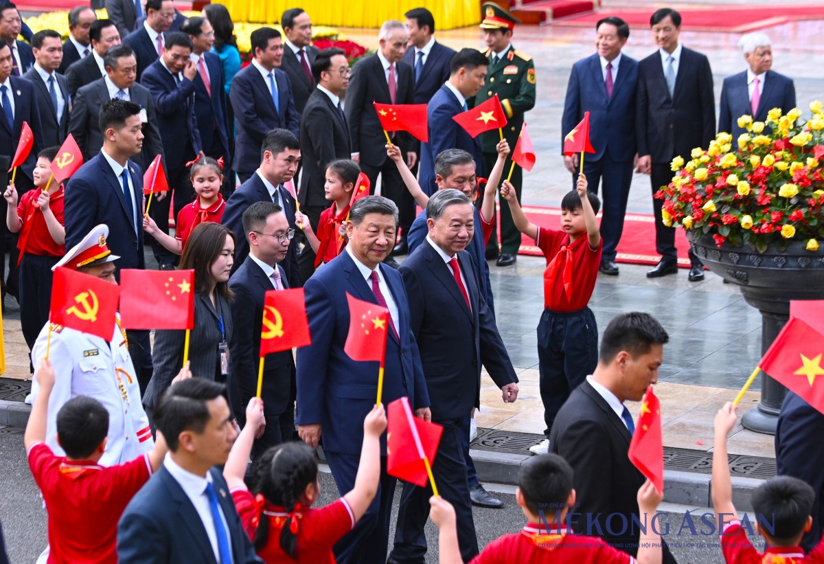 Tổng Bí thư Tô Lâm chào đón Tổng Bí thư, Chủ tịch nước Trung Quốc Tập Cận Bình. Ảnh: Đỗ Thảo - Mekong ASEAN