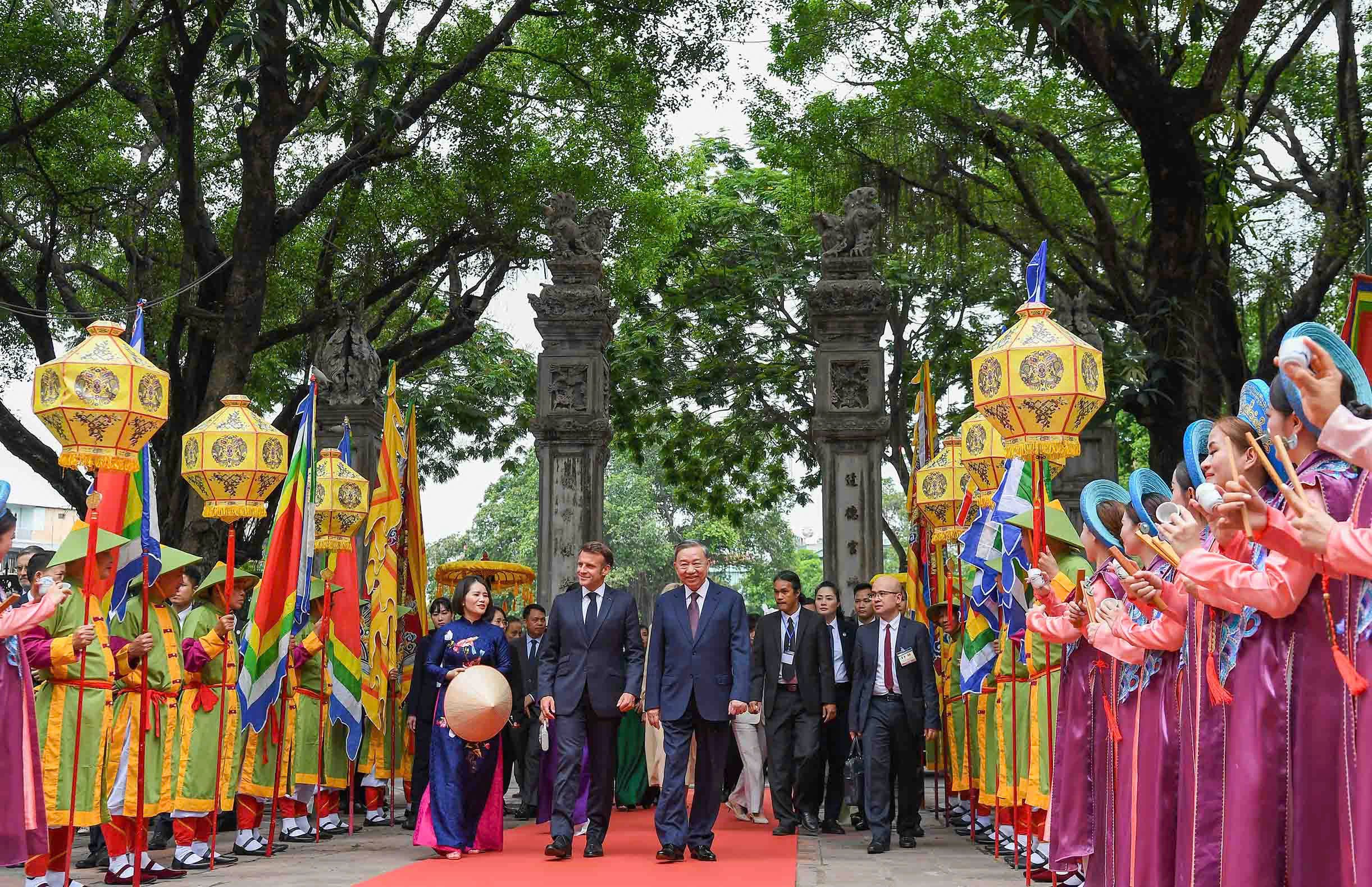 Việc Tổng Bí thư Tô Lâm mời Tổng thống Pháp thăm Văn Miếu - Quốc Tử Giám và thưởng lãm các giá trị văn hóa, nghệ thuật truyền thống Việt Nam có ý nghĩa đặc biệt, bởi hợp tác văn hóa, giáo dục là một trong những lĩnh vực hợp tác nổi bật trong quan hệ song phương, cũng là điểm nhấn trong chuyến thăm cấp Nhà nước Việt Nam lần này của Tổng thống Pháp Emmanuel Macron và Phu nhân cùng đoàn đại biểu cấp cao Cộng hòa Pháp.