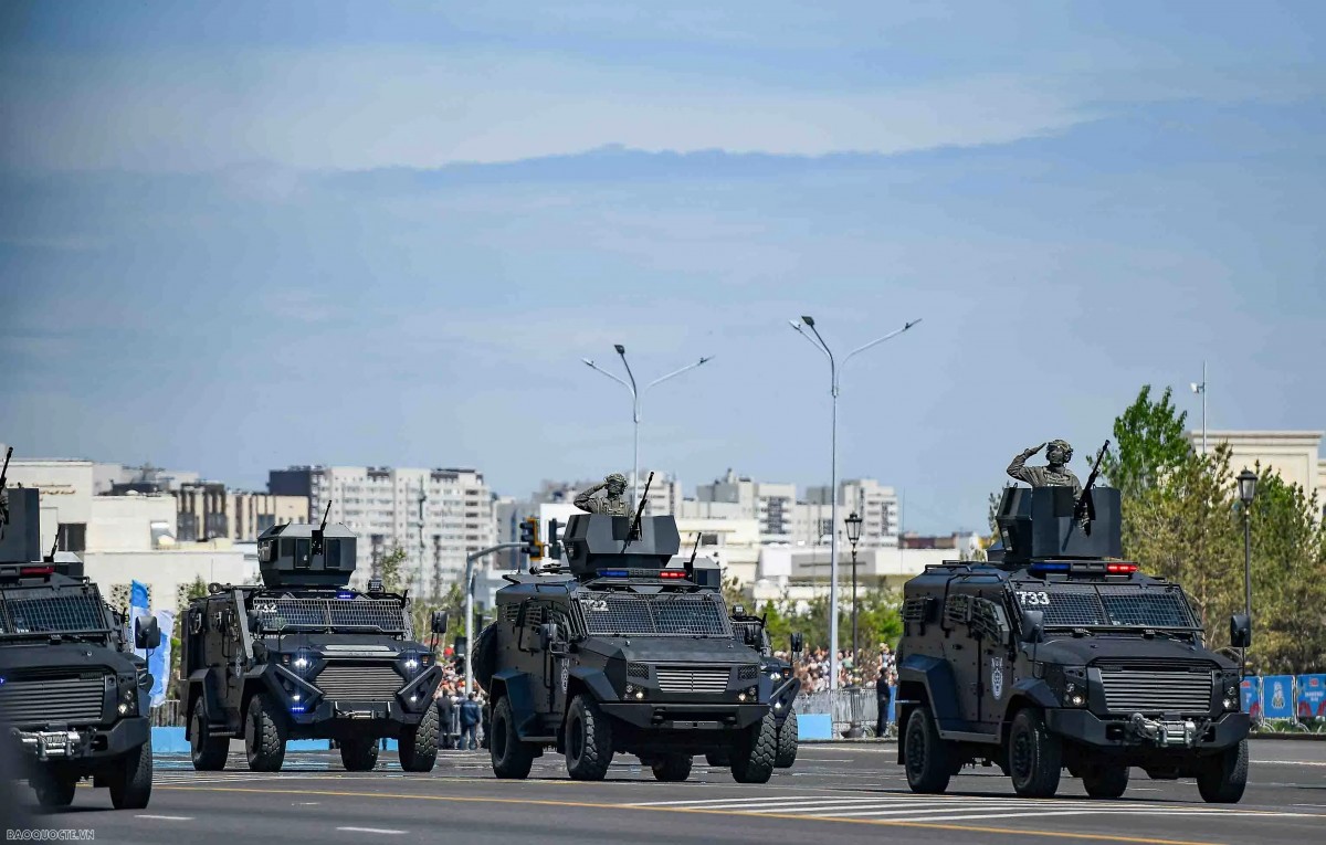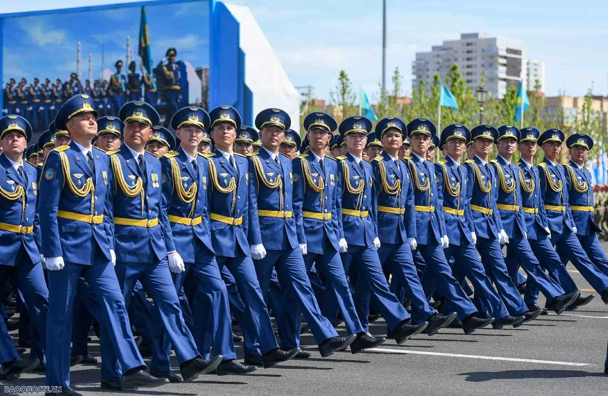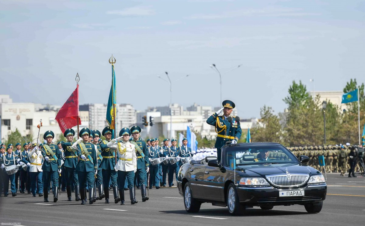 | Các lực lượng vũ trang Kazakhstan duyệt binh tại buổi lễ. Ảnh: Báo Quốc tế. |