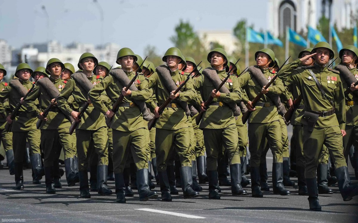 | Lễ duyệt binh mừng 80 năm chiến thắng trong chiến tranh Vệ quốc Vĩ đại của nhân dân Kazakhstan. Ảnh: Báo Quốc tế. |