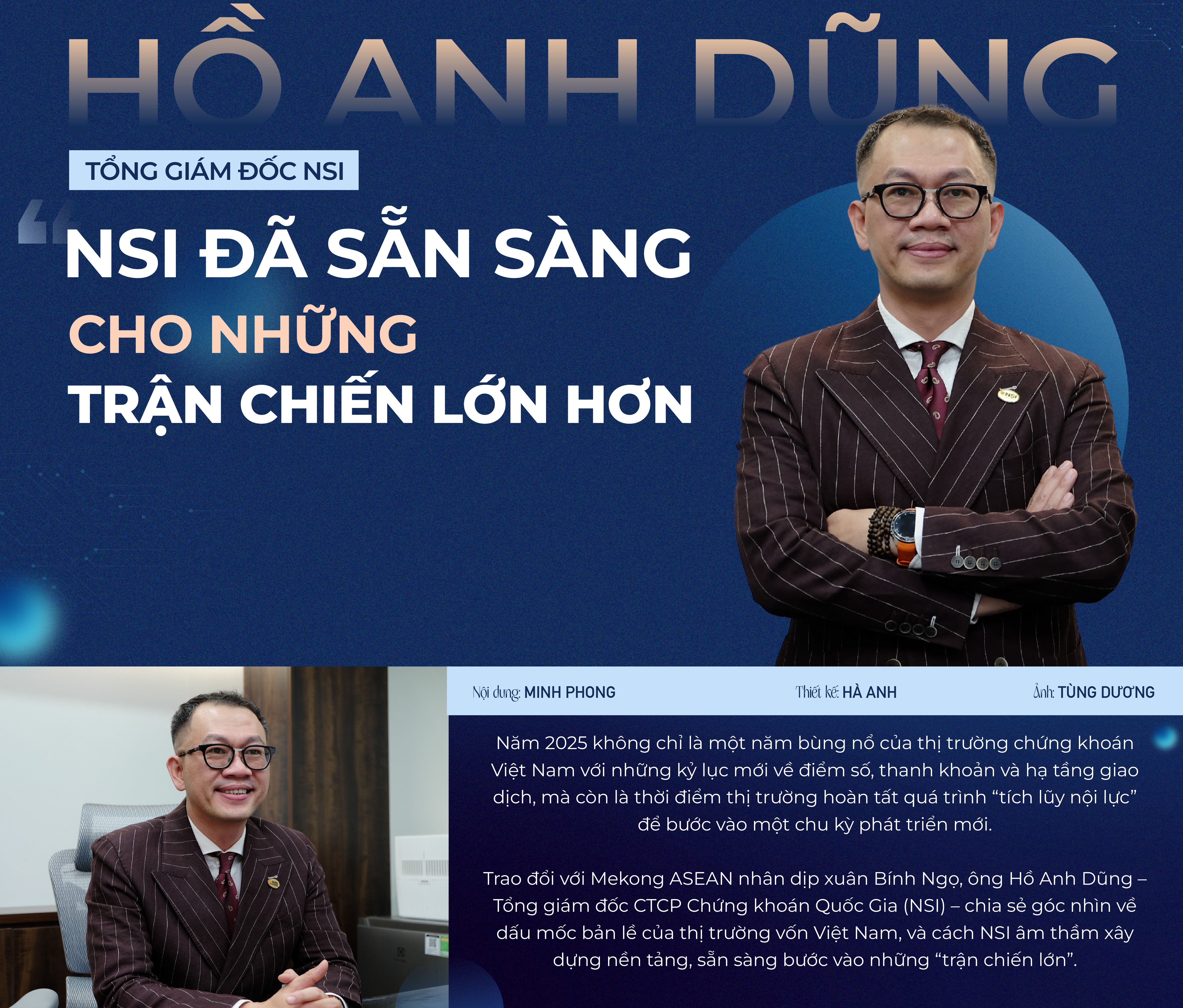Ông Hồ Anh Dũng: Nhìn lại 2025, với NSI, đây là một năm trọn vẹn theo đúng tinh thần đi đường dài. Công ty tập trung xây nền móng: kiện toàn bộ máy nhân sự, hoàn thiện hệ thống quản trị, củng cố an toàn thông tin, chuẩn bị tăng vốn và đầu tư cho hạ tầng công nghệ, trong đó có hệ thống giao dịch trái phiếu riêng lẻ.