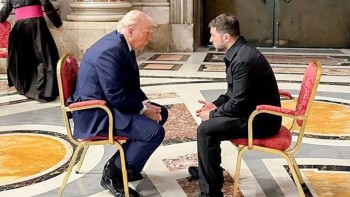 Tổng thống Ukraine Volodymyr Zelensky và Tổng thống Mỹ Donald Trump có cuộc nói chuyện riêng kéo dài 15 phút bên trong Đại giáo đường Thánh Peter ở Vatican, ngay trước lễ tang Giáo hoàng Francis. |