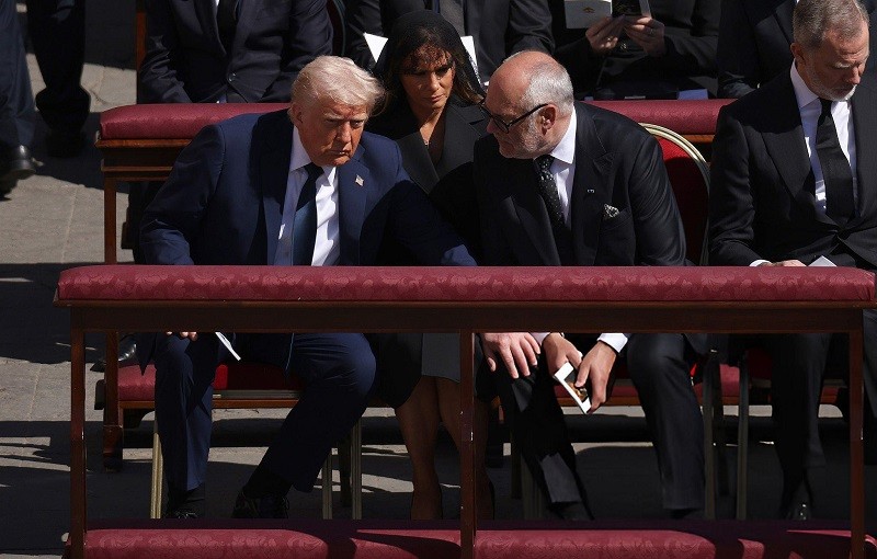 | Tổng thống Estonia Alar Karis ngồi cạnh Tổng thống Mỹ Donald Trump và phu nhân tại lễ tang Giáo hoàng Francis. Ảnh: Getty |