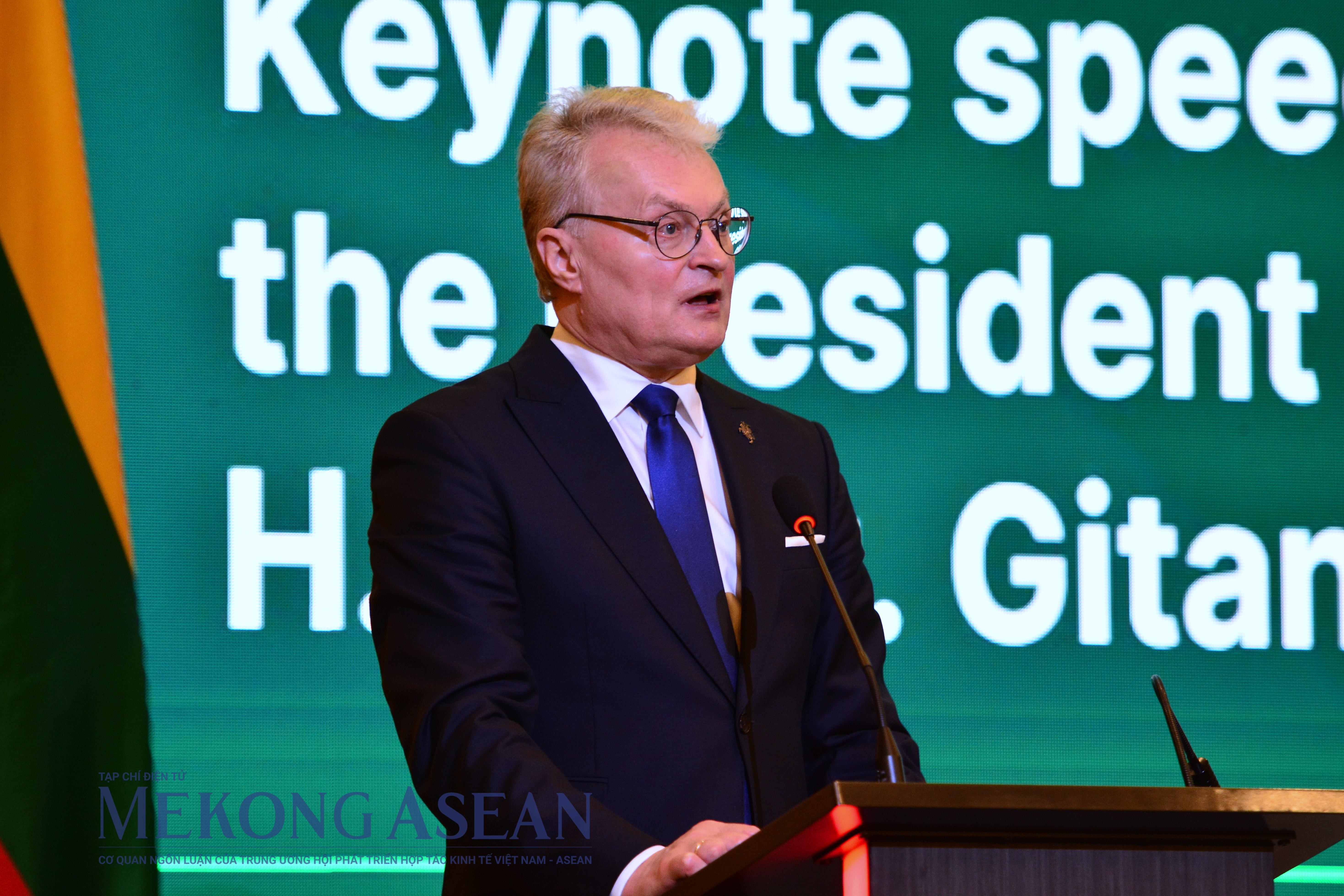 | Tổng thống Lithuania Gitanas Nausėda cho rằng, diễn đàn doanh nghiệp sẽ là cơ hội tuyệt vời để hai bên tăng cường hiểu biết lẫn nhau và khám phá các cơ hội kinh doanh mới. Ảnh: Lê Hồng Nhung - Mekong ASEAN |