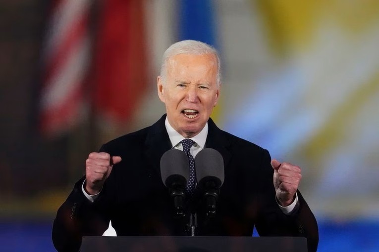 | Tổng thống Joe Biden phát biểu tại Lâu đài Hoàng gia Warsaw, ngày 21/2. Ảnh: Reuters |