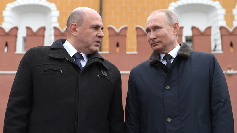| Thủ tướng Nga Mikhail Mishustin (trái) và Tổng thống Nga Vladimir Putin (phải). Ảnh: RTE |