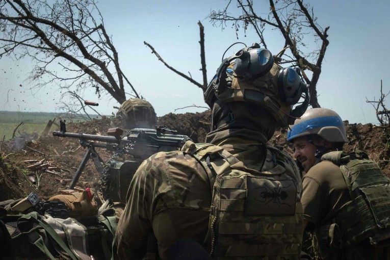 | Binh sĩ Ukraine bắn về phía vị trí của Nga từ một chiến hào ở vùng Zaporizhzhia, ngày 23/6. Ảnh: AP |