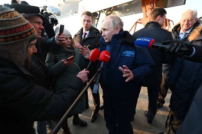 | Tổng thống Putin trả lời các phóng viên sau khi thực hiện chuyến bay trên Tu-160M ngày 22/2/2024. Ảnh: Điện Kremlin |