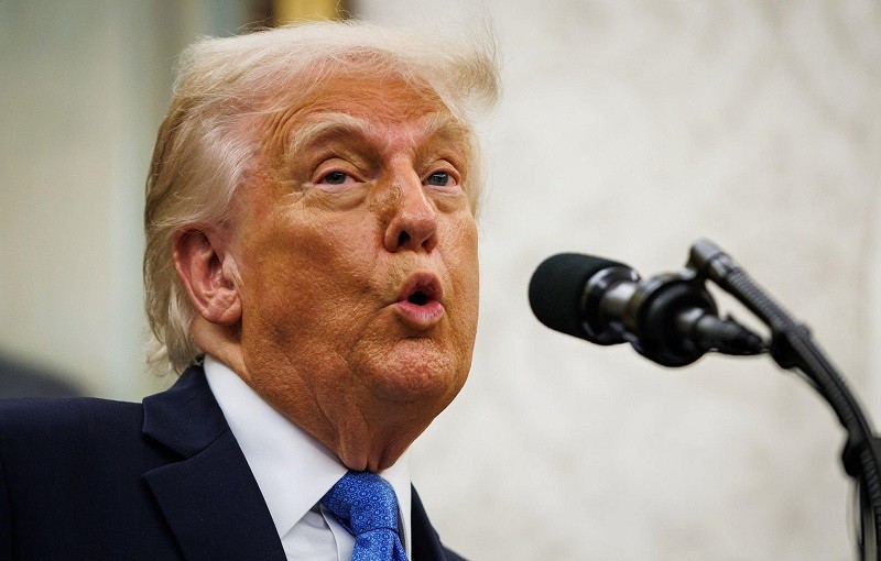 | Tổng thống Donald Trump phát biểu tại Nhà Trắng sau cuộc điện đàm với ông Vladimir Putin. Ảnh: Bloomberg |