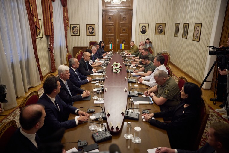 Trước đó cùng ngày, Tổng thống Zelensky đã gặp chính phủ của Thủ tướng Bulgaria Nikolai Denkov. Nội các của ông Denkov bày tỏ ủng hộ việc bán vũ khí cho Kiev. Sau chuyến thăm Bulgaria, ông Zelensky và phái đoàn đã lên chuyên cơ vận tải của không quân Czech để đến Prague.