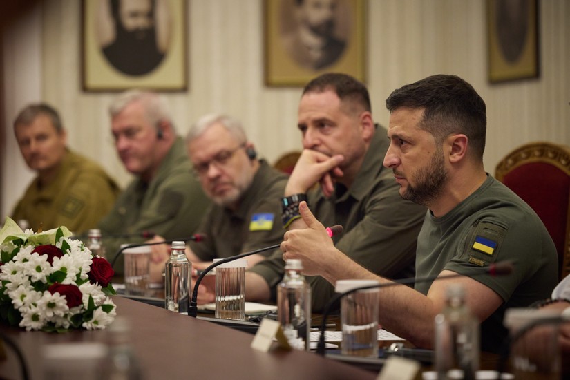 | Tổng thống Ukraine Volodymyr Zelensky tại cuộc hội kiến người đồng cấp Bulgaria. Ảnh: Twitter @MFA of Ukraine |