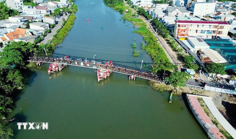 | Khu vực cầu sắt Rạch Tôm hiện hữu đã xuống cấp. Ảnh: TTXVN. |