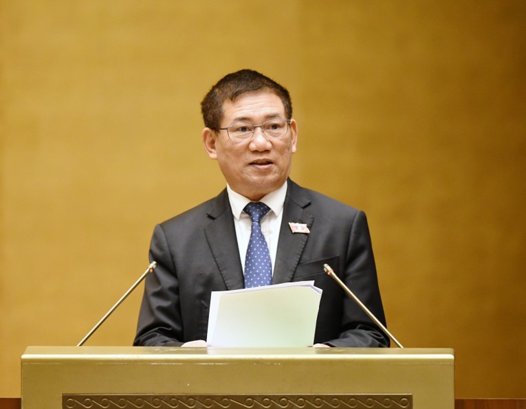 | Bộ trưởng Hồ Đức Phớc trình bày báo cáo Tổng kết thực hiện Nghị quyết số 54/2017/QH14. |