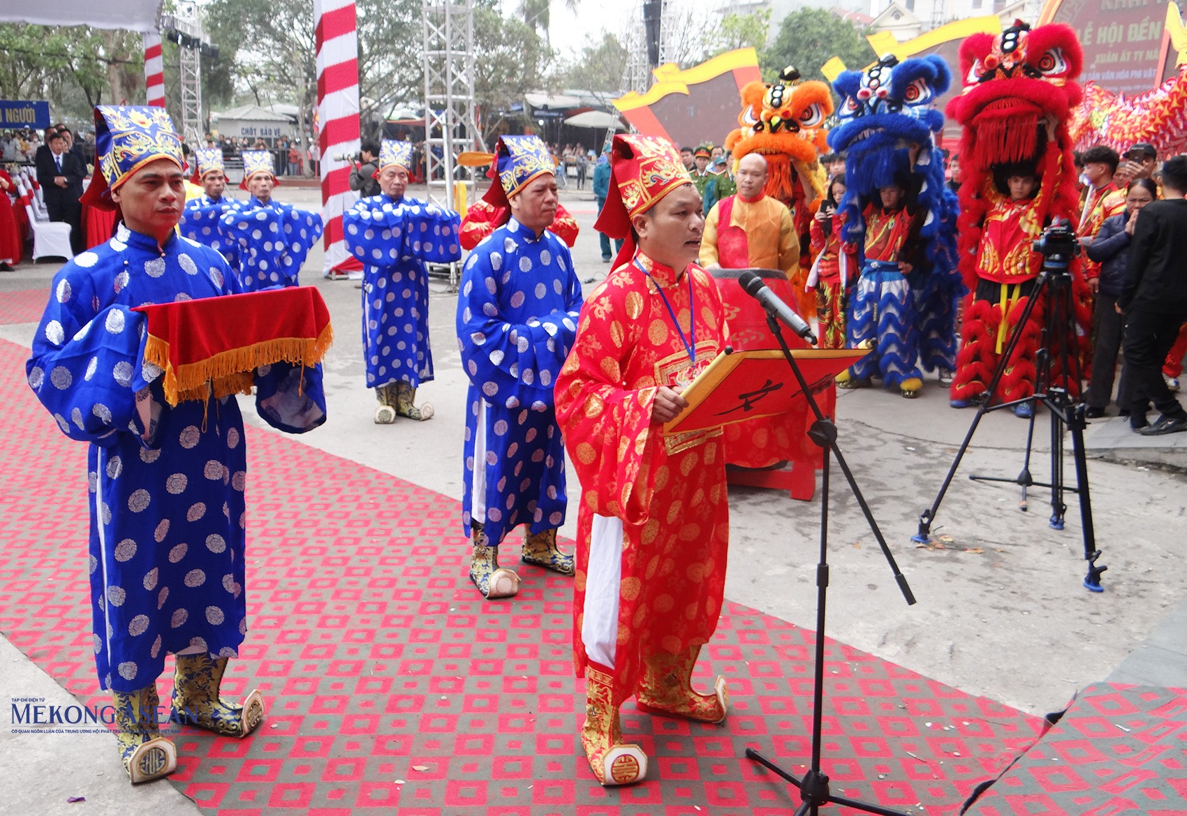 | Một tiết mục múa rồng, lân tại chương trình khai mạc lễ hội. |