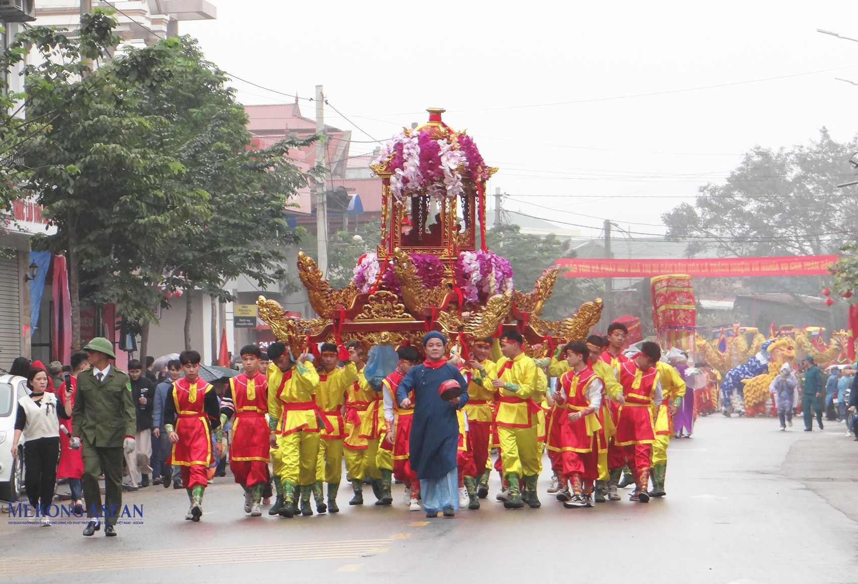 | Hàng nghìn người dân và du khách tham gia cùng đoàn rước nước tại lễ hội đền Tranh. |