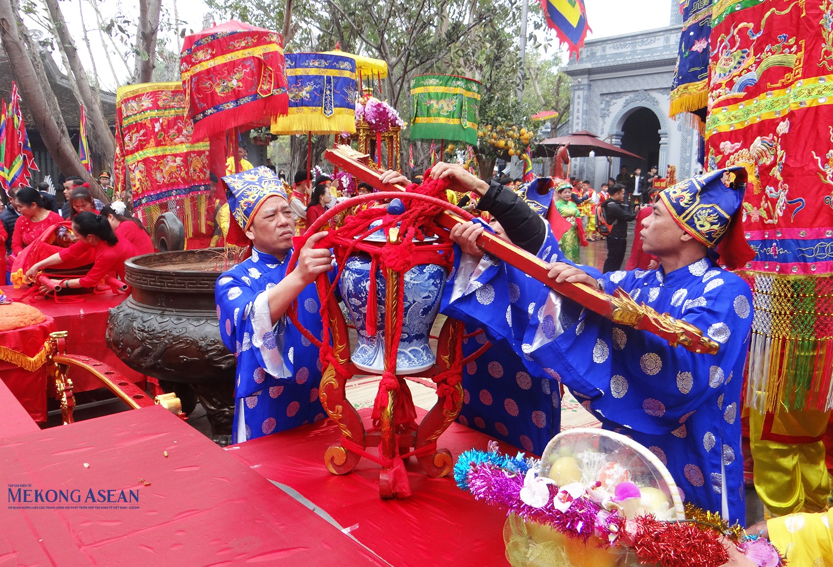 | Chóe đựng nước được đưa từ ngã ba sông Tranh về đền Tranh. |