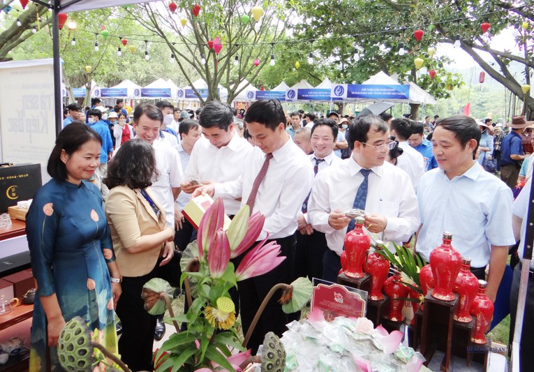 | Các đại biểu tham quan các gian hàng giới thiệu, bày bán sản phẩm. |