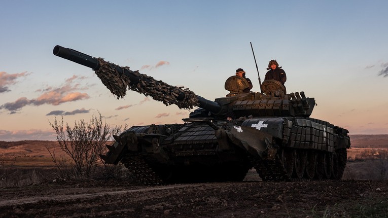 | Binh sĩ Ukraine trên xe tăng ở vùng Donbass, ngày 7/11. Ảnh: Getty Images |