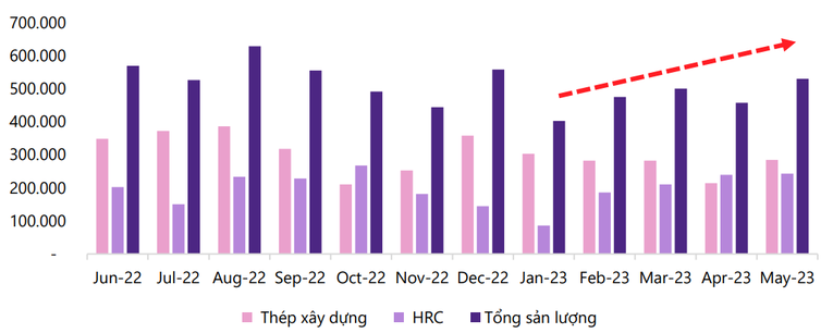 Ngành thép kỳ vọng tạo đáy nhờ giá nguyên vật liệu giảm mạnh, các nhà máy mở cửa trở lại. EVS cho rằng, giai đoạn khó khăn nhất với ngành thép đã qua và các dấu hiệu phục hồi đang xuất hiện. Về phía cung, sau giai đoạn tăng mạnh do chiến tranh Nga-Ukraine, giá than cốc và quặng sắt đã giảm lần lượt 63% và 48% từ đỉnh của năm 2022. Về phía cầu, sản lượng cũng bắt đầu hồi phục.