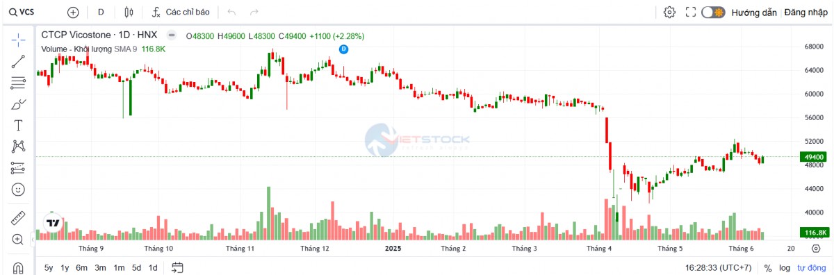 Trên thị trường chứng khoán, chốt phiên giao dịch ngày 10/6, cổ phiếu VCS tăng giá 2,28% sau khi thông tin về cổ tức được công bố, đạt 49.400 đồng/cp.