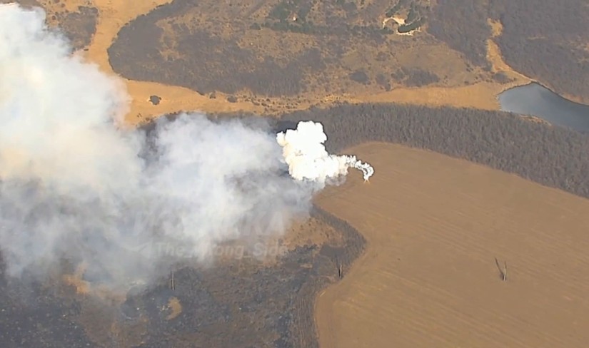 Vụ nổ đã gây ra nhiều đám cháy ở khu vực lân cận và thiêu rụi hoàn toàn bệ phóng.