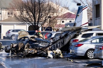 Một máy bay cỡ nhỏ chở 5 người đã rơi xuống bãi đậu xe tại Manheim, bang Pennsylvania và bốc cháy dữ dội. |