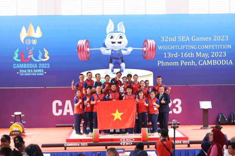 Đến chiều 16/5, tại khu E nhà thi đấu Chroy Changvar, đội tuyển cử tạ Việt Nam đã có màn chào kết đầy ấn tượng với chiến thắng của đô cử Trần Đình Thắng với mức tổng cử 359kg (cử giật 150kg và cử đẩy 209kg).