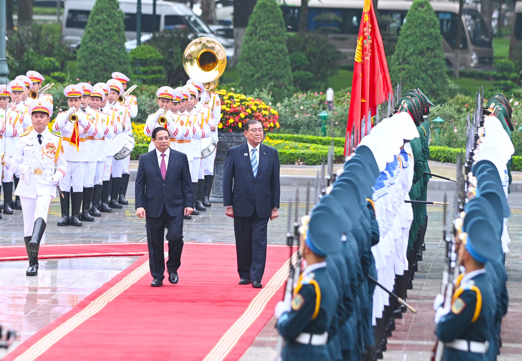 | Thủ tướng Phạm Minh Chính chủ trì lễ đón Thủ tướng Nhật Bản Ishiba Shigeru thăm chính thức Việt Nam, ngày 28/4/2025. Ảnh: Đỗ Thảo - Mekong ASEAN |
