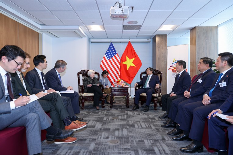 | Thủ tướng Phạm Minh Chính và Bộ trưởng Tài chính Mỹ Janet Yellen. Ảnh: VGP |