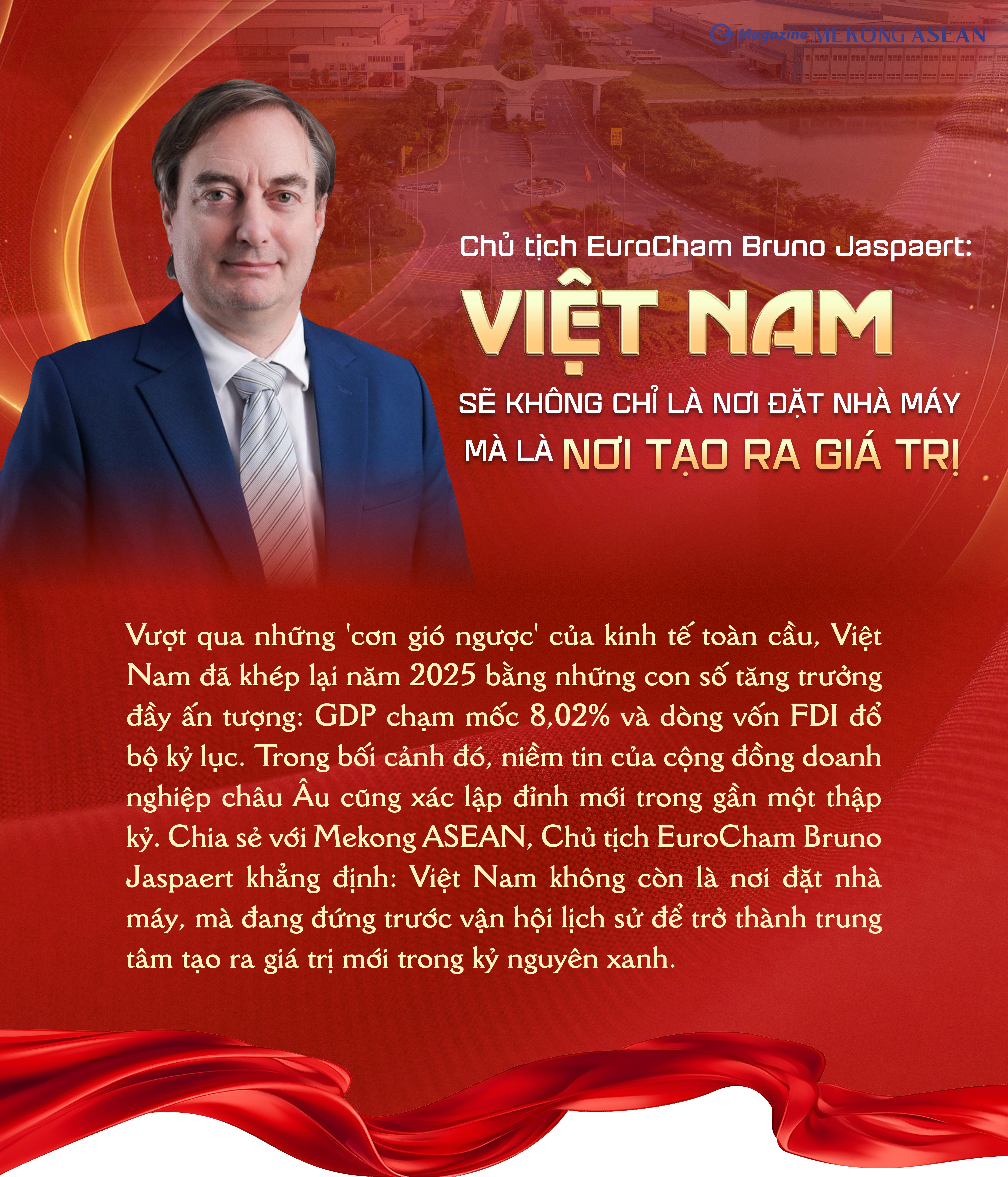 Chủ tịch EuroCham Bruno Jaspaert: Năm 2026 EuroCham sẽ tiếp tục đóng vai trò cầu nối giữa doanh nghiệp và Chính phủ, tập trung vào việc tháo gỡ các điểm nghẽn mang tính cấu trúc, thúc đẩy các “ưu tiên chiến lược, những trận chiến phải thắng” để cải thiện môi trường đầu tư.