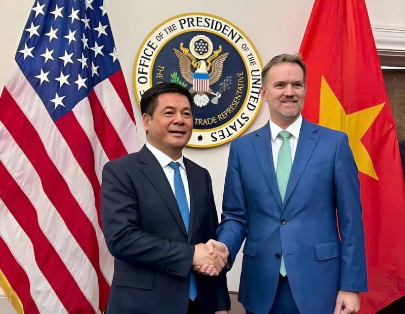 | Vào cuối ngày làm việc thứ ba, Bộ trưởng Nguyễn Hồng Diên đã có phiên đàm phán với Đại sứ, Trưởng Đại diện Thương mại Mỹ Jamieson Greer. Nguồn: Bộ Công Thương. |