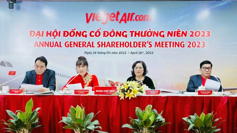 Chiều 26/4, CTCP Hàng không Vietjet (Vietjet Air, mã VJC) tổ chức ĐHĐCĐ thường niên 2023. Theo tài liệu họp, năm nay, hãng hàng không đặt mục tiêu doanh thu thuần hợp nhất 50.178 tỷ đồng, tăng 25% so với năm ngoái. Trong đó, riêng công ty mẹ dự kiến đạt 41.347 tỷ đồng doanh thu.
