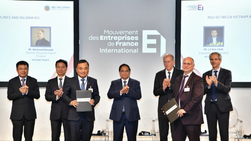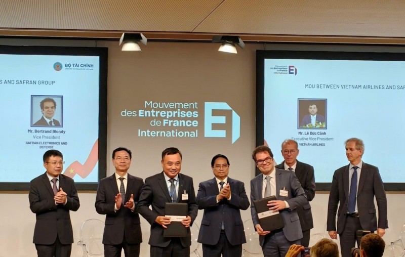 | Lễ ký kết hợp tác diễn ra trong khuôn khổ Diễn đàn Doanh nghiệp Việt Nam – Pháp, dưới sự chứng kiến của Thủ tướng Phạm Minh Chính. Ảnh: VNA |