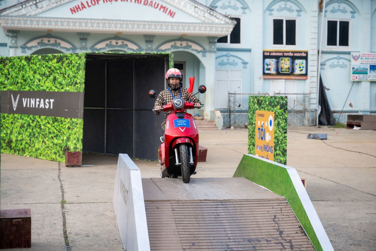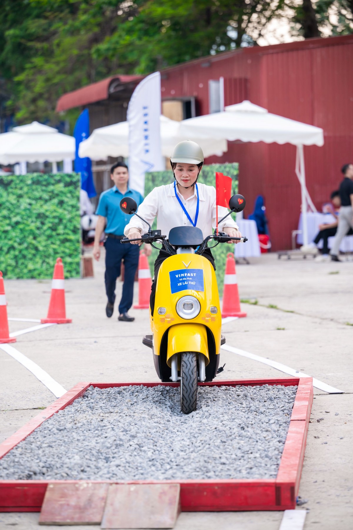 Là một trong những người đầu tiên trải nghiệm lái thử mẫu Evo Lite Neo trên các địa hình mô phỏng, chị Trần Thị Đắc không giấu được sự hào hứng khi lần đầu cầm lái xe điện. “Trước đây tôi cứ nghĩ xe điện yếu, nhưng đi rồi mới thấy xe leo dốc cực khỏe, hơn hẳn xe xăng, qua đoạn sỏi đá cũng không bị trơn trượt”, chị Đắc hào hứng.